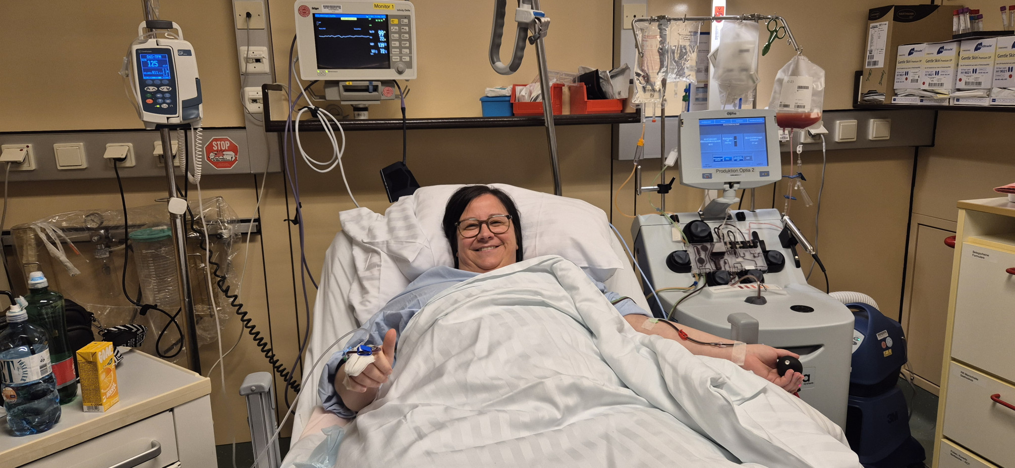 Stoprv jedno ljeto kašnje je onda dostala odgovor: Postojala je mogućnost o odgovarajućem primatelju! Kratko pred Božići se je lani onda analizirala krvna proba, da bi se mogao potvrditi, da odgovara. A zaistinu, došlo je do konkretne potvrde i 42-ljetna je dostala termin za darovanje matičnih celov. Po nekoliko pregledov kot i zimanjem medikamentov, ki neka pobudu produkciju matičnih celov u tijelu, je 12. maja ovoga ljeta bilo konačno tako daleko i Uzlopka se je u Općoj bolnici varoša Beča priključila na aparat za aferezu. Tako se je darovanje matičinih celov moglo početi. Pri ovom procesu se zimlje krv iz vene i pomoću afereze se matične cele izfiltriraju. Ostala krv dojde onda putem druge vene opet najzad u tijelo.