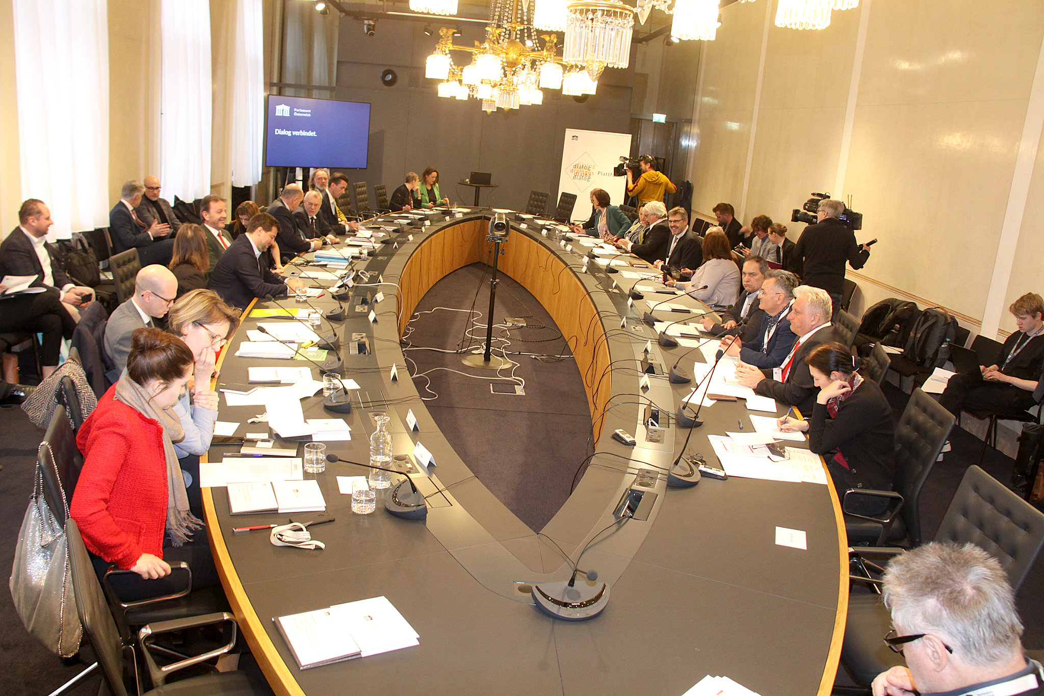 U prelipi prostorija novorenoviranoga parlamenta su se u utorak podvečer na poziv predsjednika Nacionalnoga vijeća Wolfganga Sobotke sastali govorači narodnih grup pojedinih strankov, odgovorni činovniki Saveznoga kancelarstva i zastupniki manjin reprezentirani od predsjednikov i potpredsjednikov pojedinih Savjetov za narodne grupe. Gradišćanskohrvatsku zajednicu je zastupao predsjednik Hrvatskoga kulturnoga društva i sadašnji predsjednik Savjeta Stanko Horvat sam.